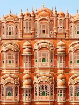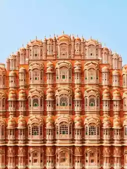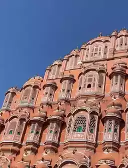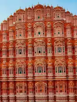 Nestled in the heart of Jaipur, Hawa Mahal (Palace of Winds) is a five-story architectural marvel made of pink sandstone, famous for its 953 small windows (jharokhas) designed to let cool breeze pass through—perfect for the royal women to observe the city without being seen.