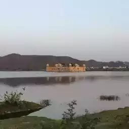 The Jal Mahal palace is an architectural showcase of the Rajput style of architecture (common in Rajasthan) on a grand scale. The building has a picturesque view of Man Sagar Lake, but owing to its seclusion from land is equally the focus of a viewpoint from the Man Sagar Dam on the eastern side of the lake in front of the backdrop of the surrounding Nahargarh ("tiger-abode") hills