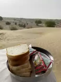④ We arrived! The tour guide will make dinner for you right in the middle of the desert! We all eat, drink chai, and sing songs 🙆♀️