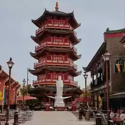 This place is great for leisurely strolls and offers many picturesque photo spots, including pagoda-style buildings, kiosks lining the lanes, Chinese-themed gardens, and statues. If you're tired or hungry, you can simply visit the kiosks or restaurants scattered along the pathways, offering a diverse range of options from hot and cold drinks to light snacks and complete lunch or dinner meals.