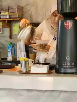 The interior is done dark yet simple it feels spacious despite the limited area itself. Price wise, it's within normal range of cafe in this vicinity, affordable & worth the taste. Definitely cheaper than flashy options I went to before. You can also work comfortably here as they provide good wifi connection.The downside is they don't have much options for food, other than the lite bites or whats called finger food. And when ordering ask for less sugar. Indonesians are sweet people that like things very sweet.