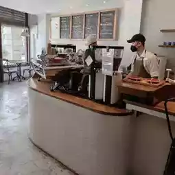 This is the only cafe I recommend where you can truly sit down without distractions. The shop has two rooms: the first on the left with a roast coffee machine, and the second where you can relax, read, or work on your laptop.