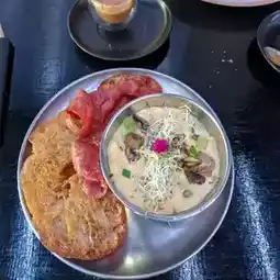 The Aglio was particularly impressive with a unique and flavorful taste that stood out. Overall, we thoroughly enjoyed our food and the ambiance. Just a heads-up: you’ll need to wait to be seated, scan the menu on the table, and place your order at the counter