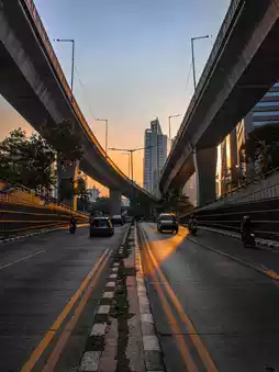 Jakarta’s MRT glides quietly beneath the chaos above, while buses and motorcycles create a living stream of motion. Bridges crisscross overhead, connecting the city’s rhythm.
