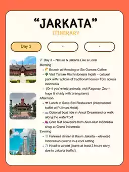 • ✈️ Head to airport (leave at least 3 hours early due to Jakarta traffic!)
