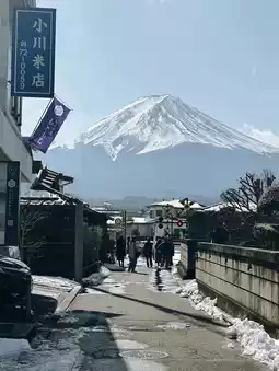 Day 3: Once we were in Tokyo, we took a bus to see Mount Fuji🗻. I have to say it's absolutely stunning, so don't do it, everyone!🤣 We took the bus, which was just as beautiful as the train. We got to see the scenery along the way. There was a little snowfall during our visit, which was so beautiful. When we arrived at Kawaguchiko, we washed our faces and brushed our teeth, then went out for something to eat. Enjoying the breathtaking view of Mt. Fuji, we then took the evening bus back.