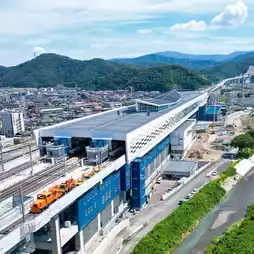 Tsuruga Station will become the starting and terminal station for the Hokuriku Shinkansen. The design concept of the Shinkansen station, which appears to float in the air and is surrounded by nature, includes a view of the port. Standing at 37 meters, it is the tallest Shinkansen station in all of Japan.