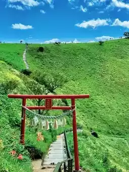 2️⃣Omuroyama: The filming location of "Your Name". The grass becomes very green at the end of April every year, and the aerial photography looks like a huge cone-shaped matcha cake; the best time to visit is from May to August. You can first take the cable car up the mountain, and then go around the crater to see the infinite scenery of Izu Oshima, Mount Fuji, the Pacific Ocean, etc. from different angles. The scenery is beautiful and healing! 🎫Ticket for cable car: 550 yen for adults, 250 yen for children. ⏰Business hours: 9:00-17:00 from March to September, 9:00-16:00 from October to February.