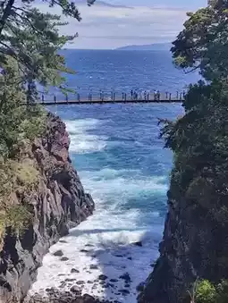 5️⃣ Kinosaki Kaigan Kadowaki Suspension Bridge: The suspension bridge is 48m long and 23m high, with the turbulent sea at its feet. The view from the suspension bridge is very magnificent, and many tourists come here to check in.
