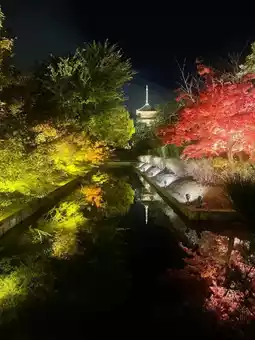 The night maple at Toji is stunning and mesmerizing, with the reflection of the five-story pagoda and red maple in the canal being particularly beautiful. Today, I unlocked three World Heritage Sites: Daigoji, Nishi Honganji, and Toji.