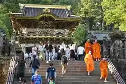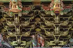 The gate is 7 meters wide, 11.1 meters high, and 4.4 meters long, intricately carved with 508 sculptures of mythical creatures, flowers, birds, and themes from Chinese legends, all adorned with gold leaf, making it extraordinarily luxurious. The third shogun of the Edo Shogunate, Tokugawa Iemitsu, was so amazed by the gate's splendor that he remarked, 'I could watch it until nightfall and still not have enough,' hence the 'Yomeimon Gate' is also known as the 'Gate of Sunset'.