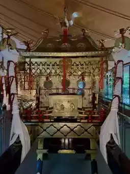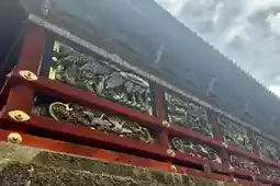 On a slightly rainy day in Nikko, the Toshogu Shrine exudes an even more solemn atmosphere. Built in 1617, a year after Tokugawa Ieyasu's death, this shrine is a major attraction listed as a World Cultural Heritage site under "Shrines and Temples of Nikko." It's the most luxurious and exquisite shrine I've seen in Japan, dedicated to Tokugawa Ieyasu. The architecture features extensive use of gold, black, and white, with opulent decorations and impeccable details. Craftsmen from all over Japan were gathered to build the shrine, using a rich palette of colors. The memorial hall at the entrance even has a special "color card" display. The pillars at the base of the buildings are intricately carved with floral and animal motifs, showcasing high aesthetic standards.