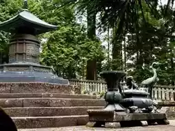 Japanese often refer to cunning old men as "old raccoons," a nickname for Tokugawa Ieyasu due to his sly nature. The exhibition hall at the shrine's entrance displays his portrait, his tiny palanquin, armor, sword, calligraphy, and personal items, offering more insight into his character. He left many famous quotes, such as "Life is like a long journey with heavy luggage, you can't rush it." With such a life philosophy, it's no wonder he was the last man standing in the struggle for power.