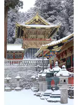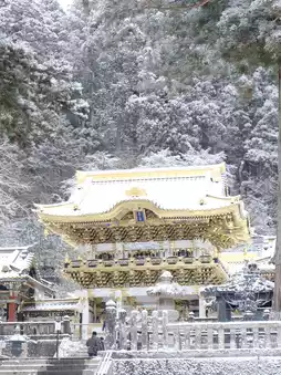 On January 25th, I drove to Nikko Toshogu Shrine and encountered a beautiful snowy day. The entrance fee for Toshogu Shrine is 1,300 yen. If you're driving in snowy conditions, it's advisable to equip your car with snow chains, as the parking lot at Toshogu Shrine is on a slope and can be difficult to access without them.