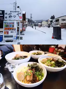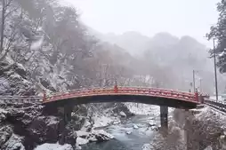 Also, wear slip-resistant shoes since there are many steps to climb, some without handrails. Shinkyo Bridge is located just below Toshogu Shrine, making it convenient to visit both attractions together. The bridge looks particularly charming in the snow. For lunch, I ate at a restaurant near Nikko Station called 'Kou no Ya,' where I had yaki-men. You can choose the spiciness level for the dandan noodles and the portion size, with prices around 1,000 yen. There's also a 'Gusto' restaurant across the street, which is a good option if you're unsure about what to eat.