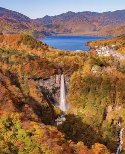Lake Chuzenji, located at the foot of Mount Nantai at an elevation of 1,269 meters, was formed by volcanic activity around 20,000 years ago. It became an international summer resort in the 19th and 20th centuries, attracting foreign diplomats and villa owners. The 25-kilometer lakeside walking route offers views of azaleas in early summer and autumn foliage.