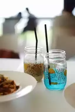 The cafe on the 2nd floor is highly recommended, offering views of the Seto Inland Sea while enjoying food. The cafe's drink cups are printed with Yayoi Kusama's Yellow Pumpkin, very cute!