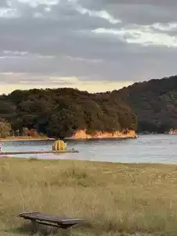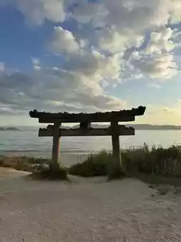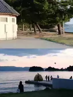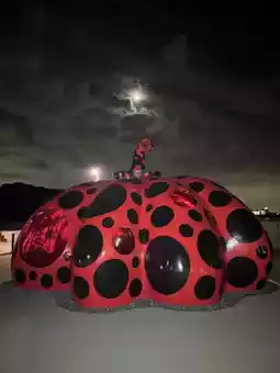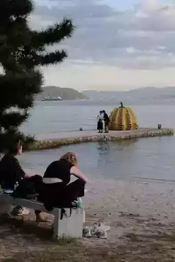 Over half the visitors were Westerners, with bikini-clad women on the beach, people drinking beer in the sea, and a man swimming past the yellow pumpkin. Watching them, I realized I'm not that carefree, avoiding getting my shoes wet or swimming. Quoting "The Secret Life of Walter Mitty," "Sometimes, I don't 📷, I just stay, in it."