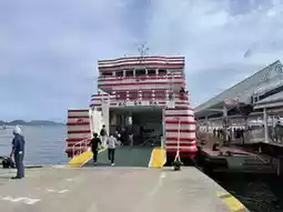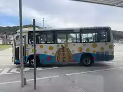 Many famous artists' works have become popular spots, such as Yayoi Kusama's pumpkins. There are two pumpkins, a red one placed at Naoshima Port and a yellow one on the Naoshima seawall, titled 'Pumpkin at the End of the World.' We stayed in Takamatsu and took a ferry every morning to Naoshima, Teshima, Ogijima, and Megijima to check out the artworks. The festival is well-situated, creating large visual effects, even making buses and ferries artistic.