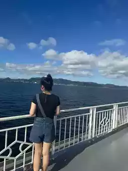 You often see the same cars and many cyclists on the road. The weather was relatively cool today, with some wind and a brief rain shower, but it cleared up quickly. I took the earliest ferry and arrived by 9 AM, thinking I could return by noon. However, the visit was rushed, and there are still many places I haven't seen, which I'll save for next time.