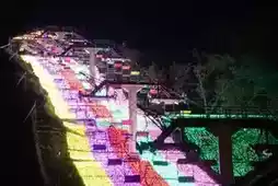 The Sagamiko Light Show features approximately 6 million LED bulbs, surpassing any other light show in the Kanto region. Besides enjoying the scenery, visitors can also enjoy rides like the carousel, Ferris wheel, bumper cars, and other attractions. Most of these rides allow infants to ride along.