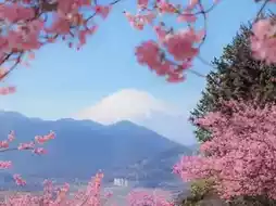 Kawazu-Sakura viewing spot with a view of Mt. Fuji in the background near Tokyo🇯🇵