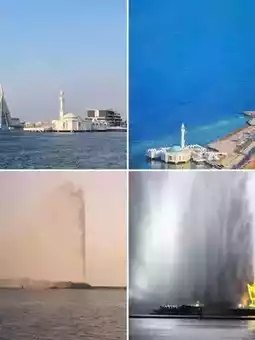 At sunset 🌇, when the afterglow shines on the sea, the King Fahad Fountain displays its stunning beauty. Walk along Falasteen Street Walk toward the sea; this is the best spot to enjoy the view. The fountain sparkles under the golden sunlight, incredibly beautiful.
