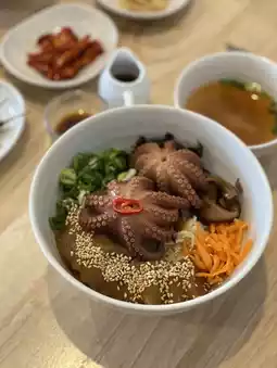 It's already famous as a Hyeopjae restaurant, but there's a place I really want to recommend because it's so delicious!! It's called "Hello Hyeopjae"👋🏻 Hello Hyeopjae is a restaurant that mixes bibimbap with shrimp, abalone, and stone octopus, which are seafood you must eat when you come to Jeju Island. This sauce is so delicious that they sell it separately and even deliver it by courier! But when I tried it, it was so delicious that it was worth it🤤 I ordered shrimp jang bibimbap and octopus jang bibimbap with a friend, and they were all delicious, but my friend and I both thought the shrimp jang was really delicious, so I definitely recommend you try the shrimp jang bibimbap👍🏻