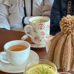 They serve warm tea in a teapot, and the teapot warmer goes perfectly with the cafe's concept, right? 🫖