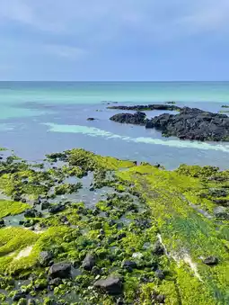 #JejuTravel I'll introduce you to a beach in Jeju with a particularly beautiful sea color!! It's Gimnyeong Beach located in Jeju City. 🤗 If you go to Jeju, you must!!! The sea color is mysterious and pretty enough to go there💙 There weren't many people, so it was nice to look around. ㅎㅎ There's also Gimnyeong Orai raw fish restaurant nearby, and the view was really nice!! If you go to Gimnyeong, Jeju, you should definitely stop by the beach😇