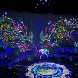 Once you pass the supermarket, you will see gorgeous media art! The sight surrounding the large exhibition hall wall is