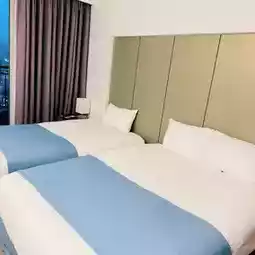 High-rise family room, the room has a double bed and a single bed, the bed is moderately soft and comfortable.
