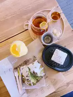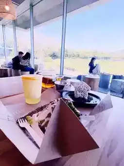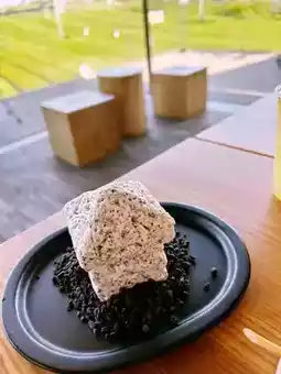 They have the most unique and loveliest Hallasan Mountain cake. There are also instructions for you to follow to create the volcano eruption. You will start by sprinkling the rock cookies around the cake and use the white melting chocolate into the center of the mountain. Then you use the knife to slice if through. Be sure to capture all of this in your videos. I also order their special local jeju tangerine tea, it is so good. Every cake here is design with Jeju’s landscape and created with local ingredients. There are so many to try and I feel like I have to come back soon.