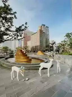 An awesome hotel in Jeju city and the lobby carpark has all the electric cars which are really to deployed for hotel guests. This is Grand Hyatt Jeju City hotel and there is a beautiful water fountain right outside the lobby. It is very near the Lotte shopping malls and the vibes here feel great too. I will want to try out this hotel the next time I come back. This hotel is a high building and the views look great. The water fountain had some shows ongoing when I was there. I like that they had laser shows and the led display of I love Jeju.