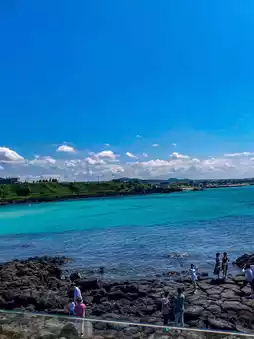 This place was really well-made~ You can see the jet-black rocks that you can only see in Jeju Island up close, and the color of the sea is incredibly pretty,,,