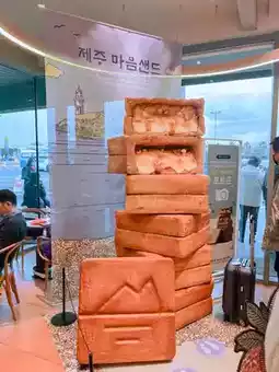 You must visit Paris Baguette in Jeju Airport, which sells the most famous Jeju souvenir, the Mind Sandwich!