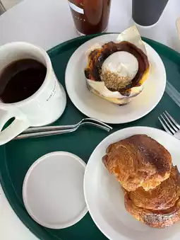 If the weather is nice, it would be nice to drink coffee outside😄 Queen Aman Basque Cheese The kids ate it deliciously🩵 The peanut ice cream was also delicious, and I thought it was just vanilla ice cream with peanuts on it, but the ice cream itself tastes like peanuts, so it's rich and smooth! The coffee was also sour, which was nice😁