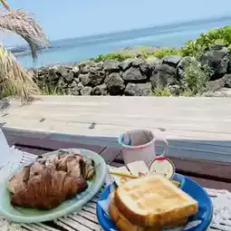 In the morning, I made coffee, baked toast, and ate breakfast while looking at the ocean.