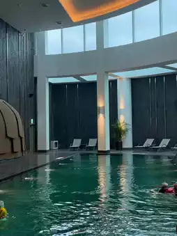 A four-season heated pool and indoor pool that are wider than you think.