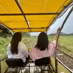 Rail bike, one of Jeju's representative leisure tours! It's a tour that rides around the ranch and oreum where cows and horses graze. The bike with 4 wheels moves semi-automatically, so you don't have to exert much strength, and it moves very slowly, so even the elderly can enjoy it without any burden! However, if you want an extreme activity, you may be disappointed! 🥲