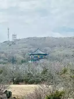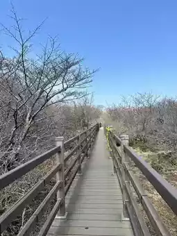 This is a wetland park located at an altitude of 1100 meters. There are actually buses up there. This time I took a Kakao taxi. ✌🏻 There are several statues here, including a white deer. There is also the highest convenience store in South Korea, GS25. I went there at the end of March, and the snow had just melted, but the trees in the wetland park had not grown back yet, so it looked rather desolate. The wetland park is connected by a wooden bridge. You can see the whole wetland park by walking along the wooden bridge 🌳