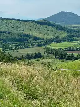 Jeju Island's 'Yongnuni Oreum' where you can take in the lush green scenery at a glance