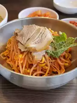 As expected, meat noodles with no unpleasant odor, sweet and sour bibim noodles, and even kimchi that's famous enough to be sold separately!
