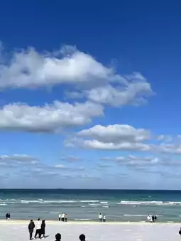There are many cafes right in front of the beach, so it's great for enjoying coffee while looking out at the sea. ;)