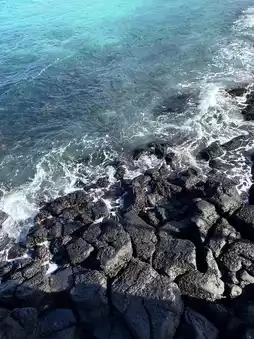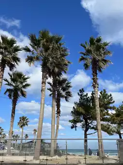 There's a cafe called Delmundo on the beach. If you walk all the way to the left of Delmundo, you can get a closer look at the sea.