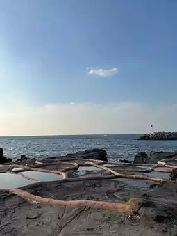 If you visit during low tide, you can properly observe the appearance of the stone salt farm.