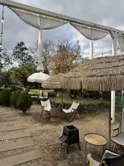 'Your First Trip' located in Aewol, Jeju, exudes an exotic atmosphere reminiscent of a Southeast Asian resort. The private tent seats set among the tangerine fields offer a unique experience, and it is convenient as you can order meals without a break time.