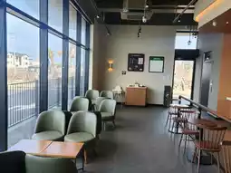 🏅A place with Starbucks Drive-Thru, parking lot, and rooftop