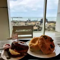 It is a great place to enjoy delicious bagels while looking at the ocean:)
