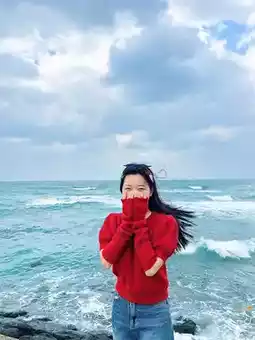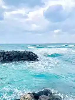 If you are traveling to Jeju Island, take a pretty picture with the blue sea next to Gwakji Beach in Aewol ๐